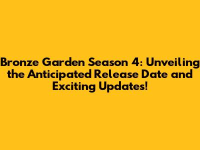 Bronze Garden Season 4: Release Date, News & Updates!