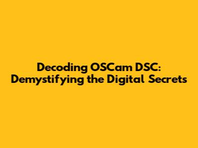Decoding OSCam DSC: Demystifying The Digital Secrets