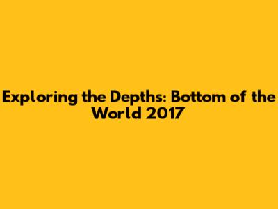 Exploring The Depths: Bottom Of The World 2017
