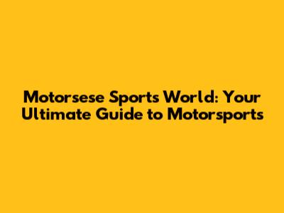 Motorsese Sports World: Your Ultimate Guide