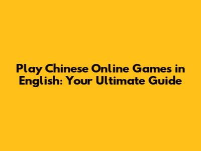 Play Chinese Online Games In English: Your Ultimate Guide