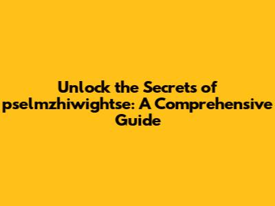 Unlock The Secrets Of Pselmzhiwightse: A Comprehensive Guide