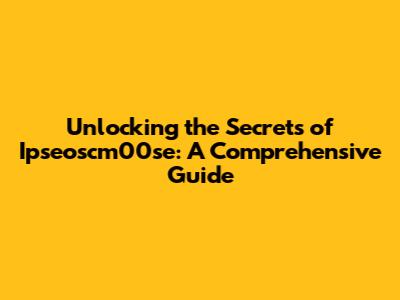 Unlocking The Secrets Of Ipseoscm00se: A Comprehensive Guide