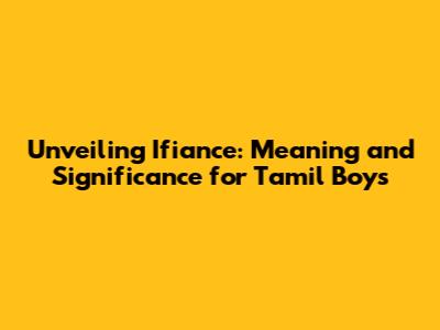 Unveiling 'Ifiance': Meaning And Significance For Tamil Boys